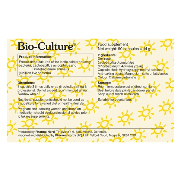 Pharma Nord Bio-Culture is a premium Danish live bacteria supplement containing carefully selected friendly bacterial cultures to support digestive balance and gut wellbeing. Each capsule is designed to deliver quality-tested strains in a convenient daily format, making it ideal for those looking to support their digestive system as part of a healthy lifestyle.