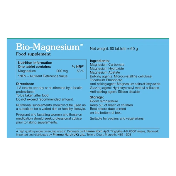 Pharma Nord Bio-Magnesium is a premium Danish magnesium supplement developed to high pharmaceutical manufacturing standards. Formulated using three carefully selected magnesium sources, this advanced daily supplement is designed to support normal muscle function, energy release and the maintenance of healthy bones and teeth. Pharma Nord is internationally recognised for producing science-led supplements with a strong focus on quality, purity and bioavailability.